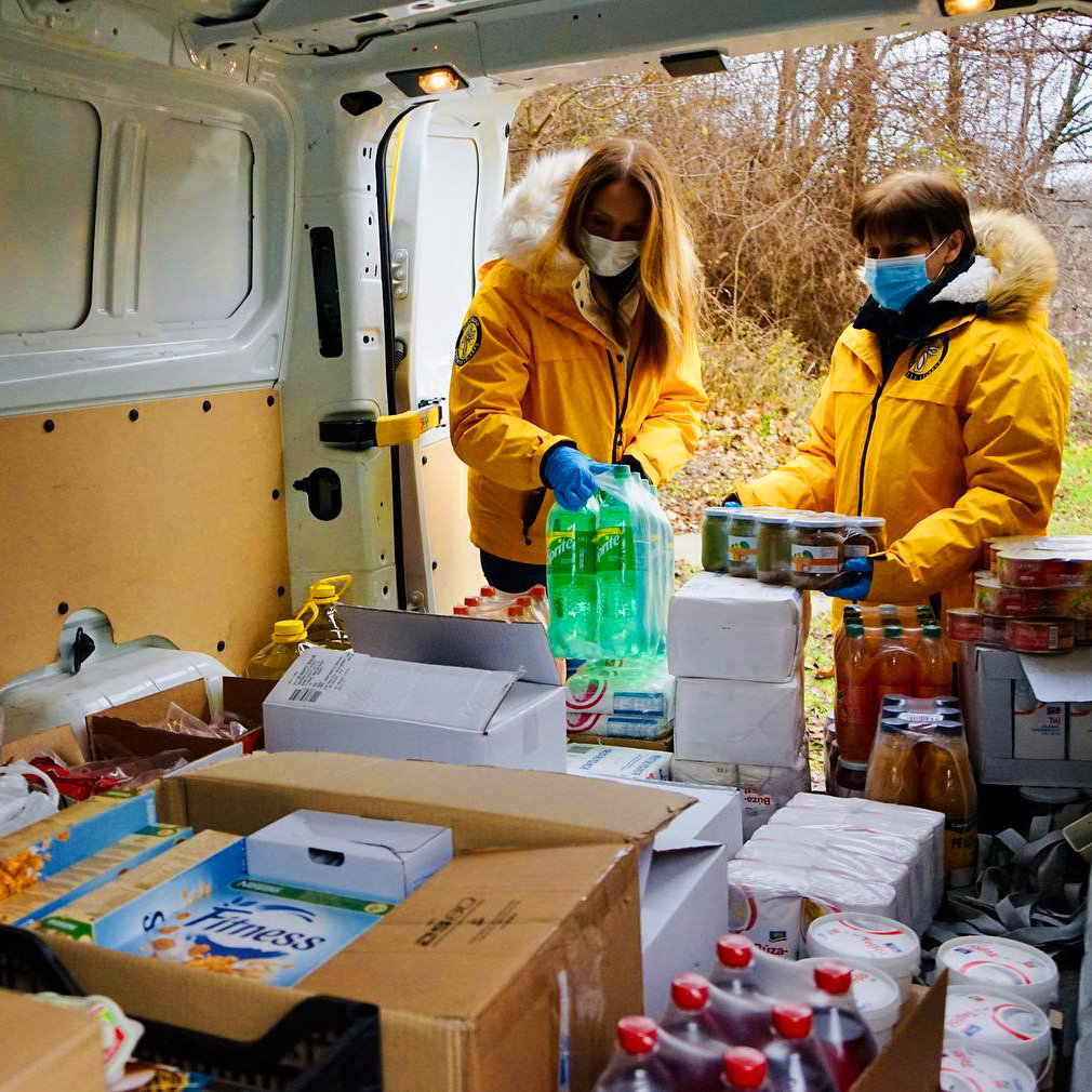 They began their holiday activities with a visit to the town of Debrecen, where the Children’s Hope Foundation cares for those with disabilities and chronic illnesses. They brought Christmas gifts for the children and durable food for their families. This included canned food, milk, cooking oil, eggs, potatoes, onions and two pallets of cleaning supplies and hygiene products. Children’s Hope Foundation then distributed the supplies to families to help them make it through these difficult times.