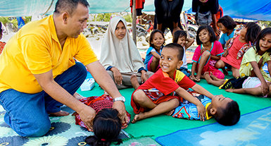 When a string of earthquakes hit Indonesia, Volunteer Ministers brought much needed trauma relief to the young.